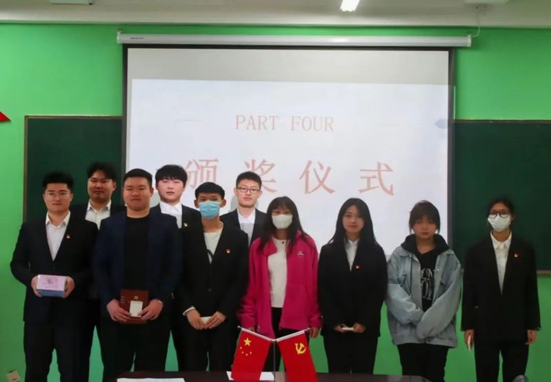 竞赛开始,由共青团思想引领中心人员介绍二十大党史知识竞赛的活动背景与目的,并陈述活动内容与要求。随后,在共青团思想引领中心成员的带领下正式开展知识竞赛,比赛过程中,气氛紧张激烈,全体学生党员冷静思考、认真作答,积极拼手速、拼脑力,充分展现了扎实的知识储蓄和显著的学习效果。竞赛结束后,由共青团思想引领中心人员宣布获奖人员,由学生党支部书记李爽老师为获奖学生党员颁布奖品,并进行合影留念。