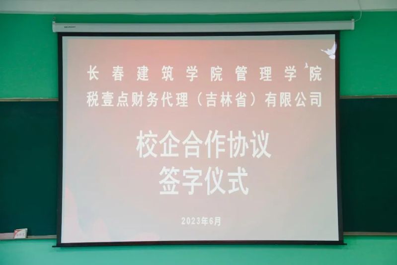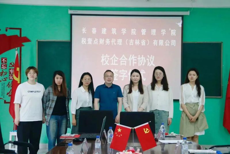 会议最后,长春建筑学院管理学院与税壹点财务代理有限公司签署了为期三年的长期合作协议。希望我院学子能在建设新时代中国特色社会主义的道路上越走越远,为社会发展贡献出一份力!