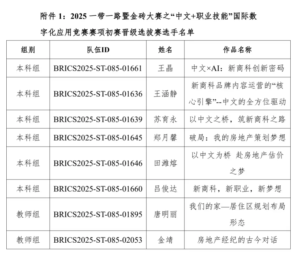 在2025一带一路暨金砖国家技能发展与技术创新大赛东北赛区选拔赛中,我校管理学院房地产专业学子脱颖而出,一举拿下1个二等奖、3个三等奖及2个优秀奖,充分展现学院“中文+职业技能”融合教育成果与专业硬实力。
