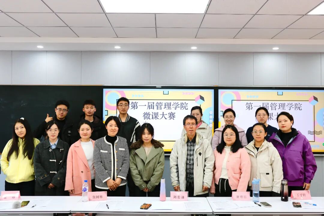 随着最后一位教师完成展示,本次微课教学比赛圆满落下帷幕,全体参赛教师、评委及工作人员共同合影留念。此次比赛不仅是教师教学能力的集中展示,更是学院以赛促教、以赛促学的生动实践,为教师搭建了交流学习、互鉴提升的平台,未来管理学院将持续深耕教学改革,推动育人质量再上新台阶。