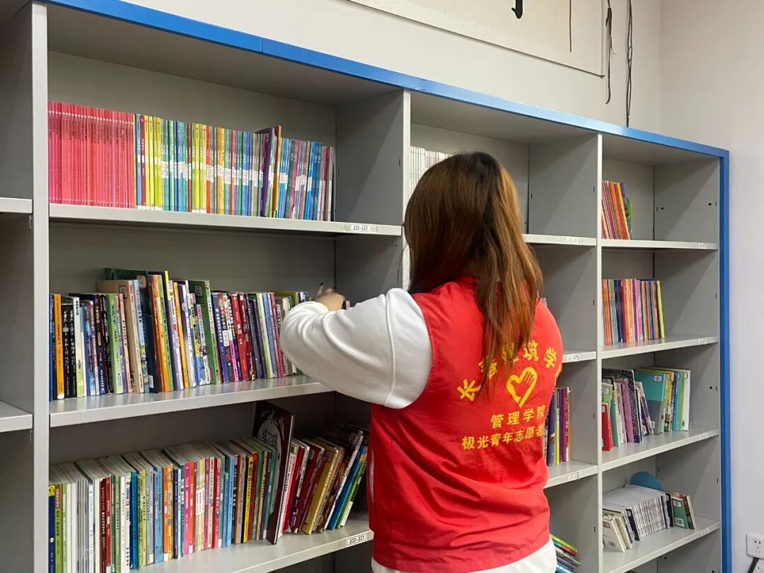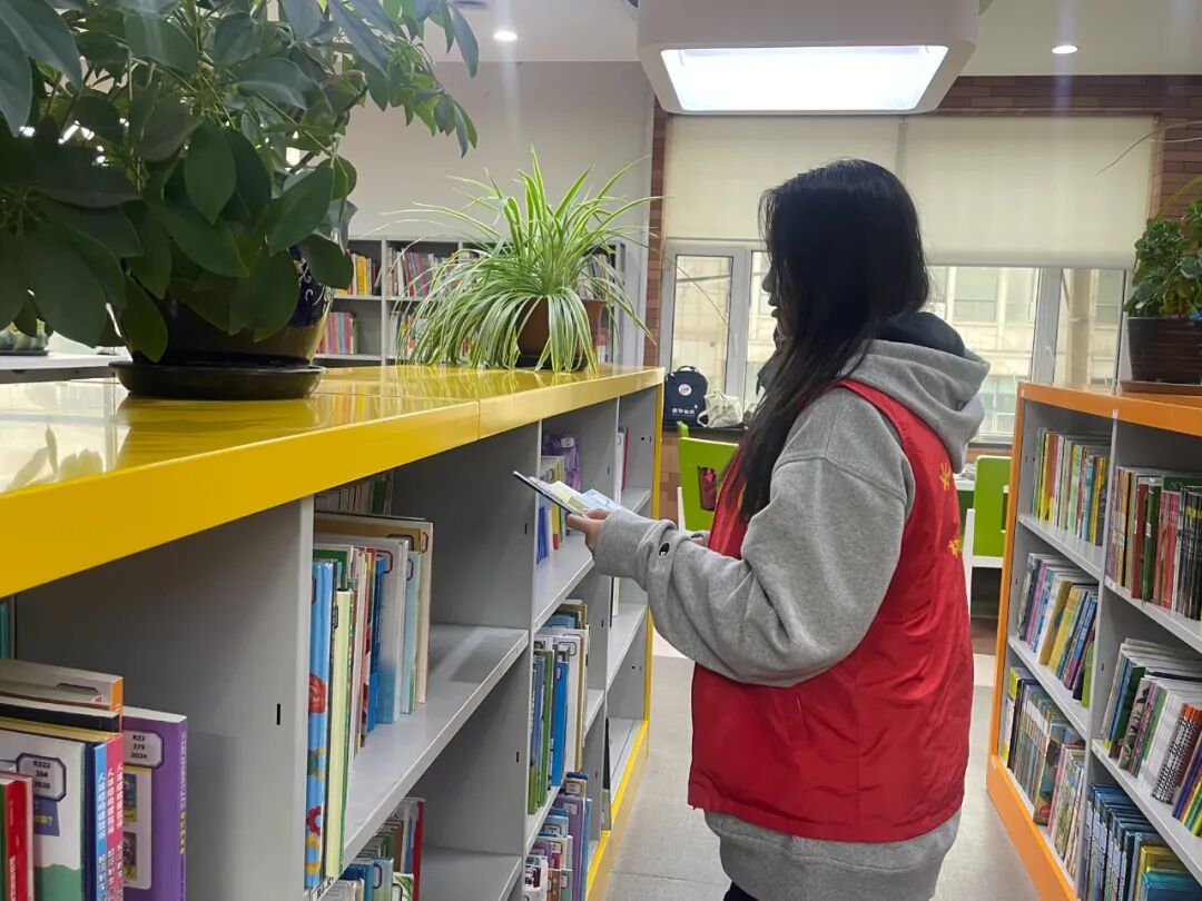 志愿者把歪歪扭扭的书一本本摆整齐,让每层书架都看起来整整齐齐;有的则对照书本上的编号,把放错位置的书找出来,小心翼翼地归到正确的书架上,方便大家以后找书。整个过程中,同学们相互配合、干劲十足,青春的身影穿梭在书架间,成为图书馆里一道亮眼的风景线。