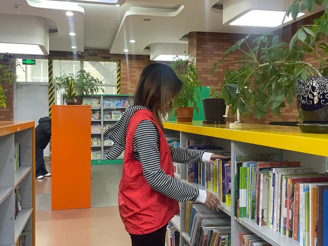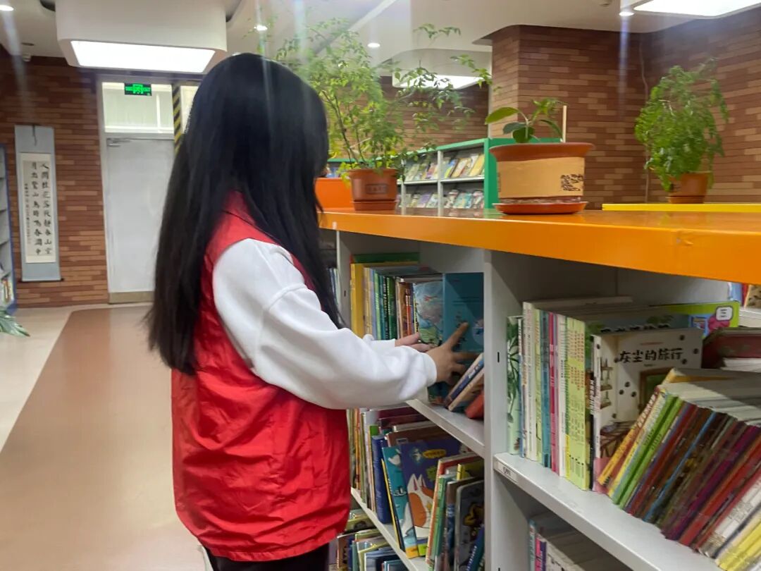 志愿者把歪歪扭扭的书一本本摆整齐,让每层书架都看起来整整齐齐;有的则对照书本上的编号,把放错位置的书找出来,小心翼翼地归到正确的书架上,方便大家以后找书。整个过程中,同学们相互配合、干劲十足,青春的身影穿梭在书架间,成为图书馆里一道亮眼的风景线。
