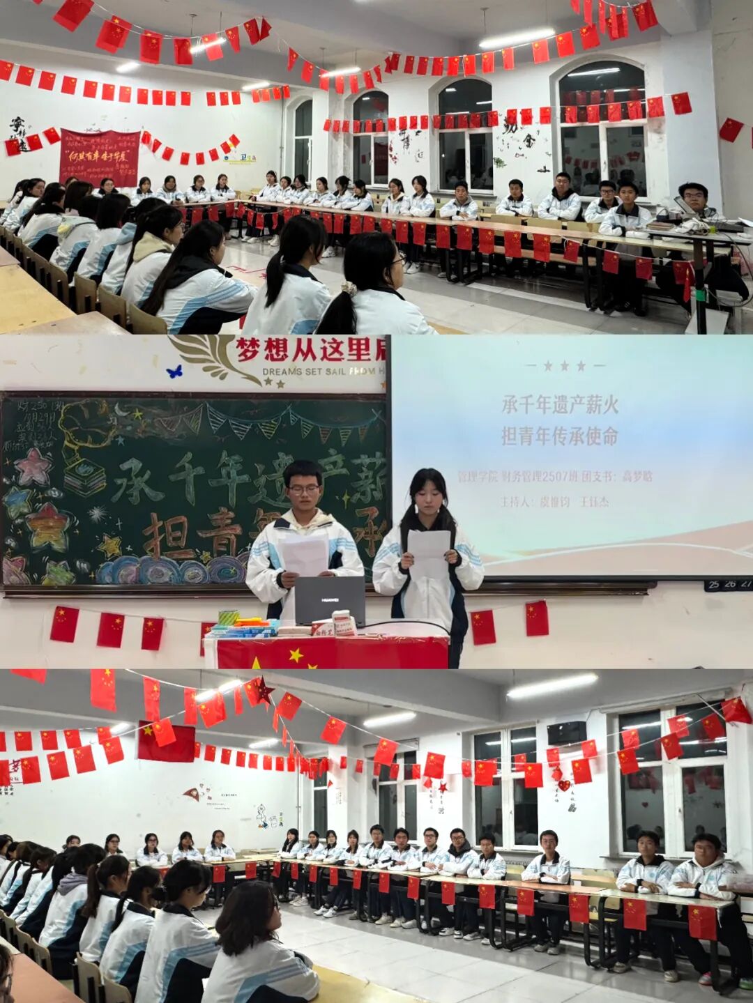为引导广大青年增强历史自觉、坚定文化自信,提升文化遗产保护意识,涵养家国情怀。因此,管理学院团委组织部决定开展以“承千年遗产薪火,担青年传承使命”为主题的团会活动。引领团员青年将理论与实践相结合,从“了解”转向“认同”,主动扛起传承与活化千年遗产的青年责任。