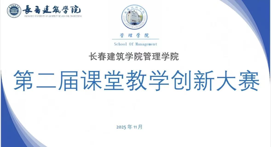 为进一步推动课堂教学改革, 提高教师教学创新能力,长春建筑学院管理学院于2025年11月14日13:00在智慧教室303成功举办了第二届课堂教学创新大赛。本次比赛邀请金靖老师担任评委,以“深化教学创新,锻造卓越军师”为主题,对参赛教师的教学能力进行专业的综合评审。