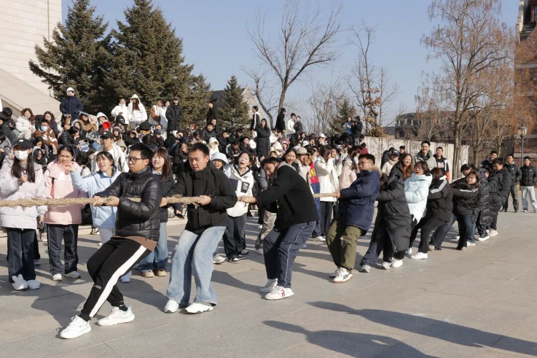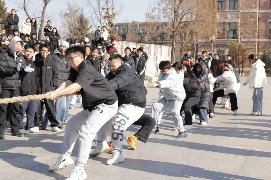 为丰富校园课余生活,强化团队协作,培养同学们坚韧意志与不服输的竞技精神,长春建筑学院管理学院于2025年11月13日中午11:40在水景广场举办“凝心向绳,力竞荣光”为主题的拔河比赛。此前初赛中脱颖而出的班级,齐聚于此开启最终较量。