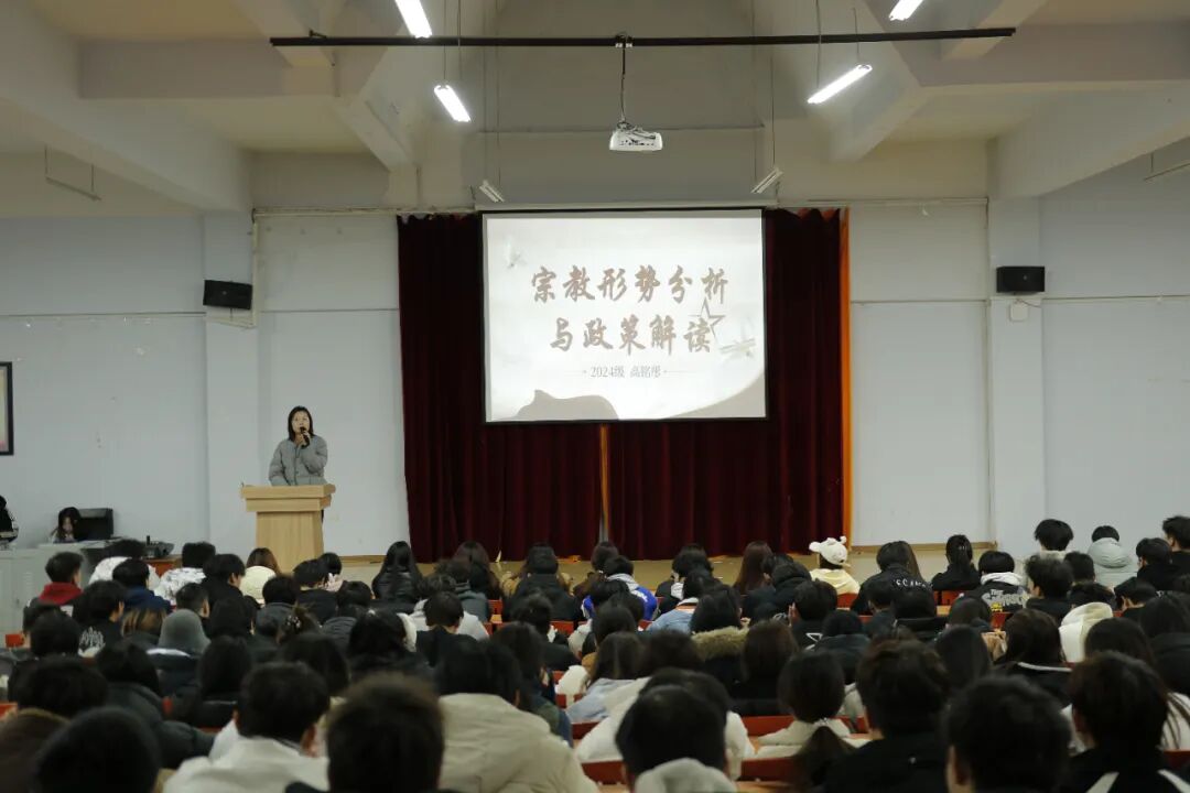 为引导同学们树立正确的宗教观,认清当前宗教领域形势,明确相关政策法规边界,筑牢思想防线。长春建筑学院管理学院于2025年11月12日16:30在五楼报告厅由分团委负责人兼24级管、造辅导员高铭彤老师组织召开“宗教形势分析与政策解读”主题教育班会。